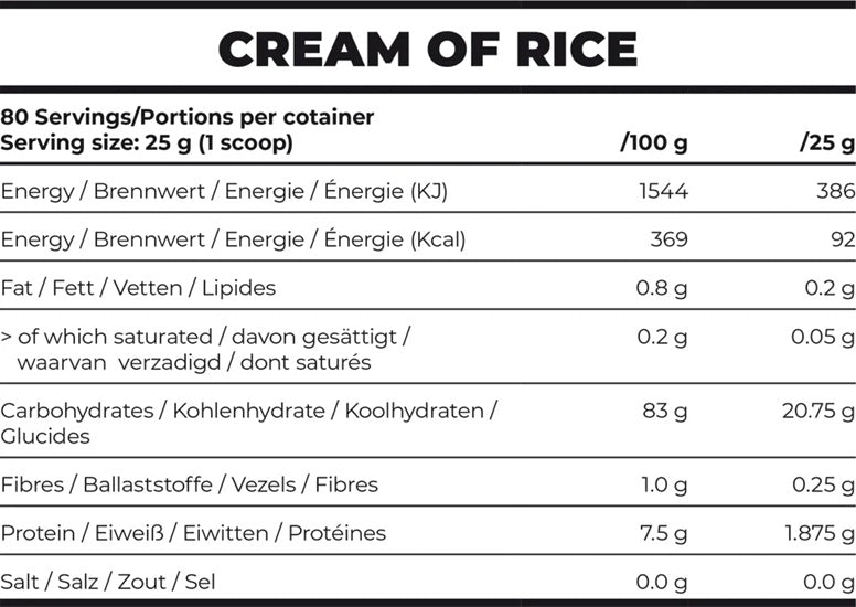 Cream of Rice is an excellent source of carbohydrates which are easily digestible and offers a smooth texture, making it ideal for protein shakes or porridges. Unlike other carbohydrate sources, Cream of Rice is hypoallergenic and gluten-free, making it suitable for people with dietary restrictions.