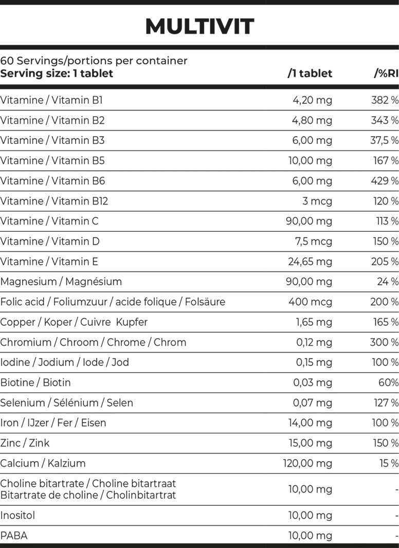 Multivit is a high-dose multivitamin and mineral complex of which you only need to take one tablet a day.